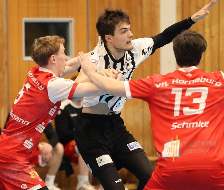 Mit einer starken Teamleistung entführten die Jungzebras beim 25:21-Erfolg zwei Punkte aus Handewitt.