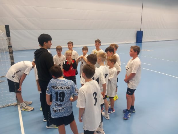 „Wir wollen Spaß zusammen haben und gleichzeitig an den Inhalten einer leistungsorientierten Entwicklung unserer Teams arbeiten.“ Inhalte des Trainingstages – von 12:00 bis 15:00 Uhr werden beide Mannschaften gemeinsam trainieren. Auf dem Plan stehen unter anderem: Wurftraining (Sprungwurf, Schlagwurf, Zielgenauigkeit & Wurfkraft), Ballhandling & Koordination (Ballkontrolle in Bewegung, Rhythmusgefühl), Täuschungen (Wurf- und Körpertäuschungen, um Abwehrspieler zu überwinden), Gruppentaktik & Positionsspiel (Absprachen im Angriff und in der Abwehr, Raumaufteilung, Überzahlsituationen nutzen), 1:1-Situationen & Manndeckung (Förderung individueller Entscheidungen), Athletische Inhalte (Beinarbeit, Sprungkraft, koordinative Übungen). Dabei wird mit Ballgröße 1 und in der Spielform 6+1 trainiert. Um jeden Spieler bestmöglich zu fördern, finden viele Übungen in Kleingruppen statt.
